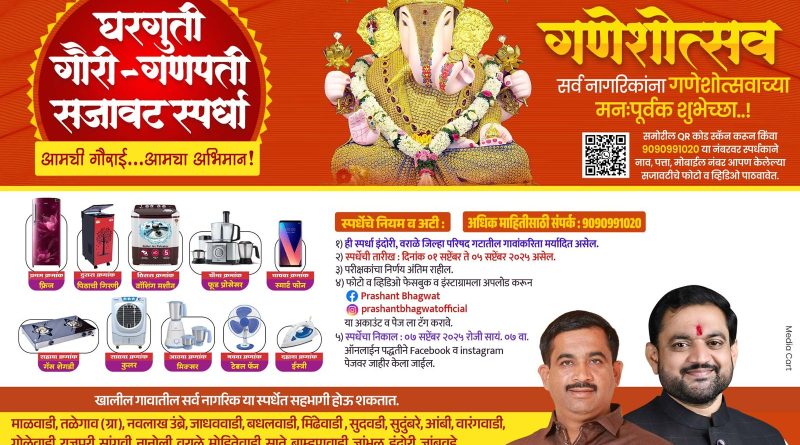 आमची गौराई… आमचा अभिमान! प्रशांतदादा भागवत युवा मंच तर्फे घरगुती गौरी-गणपती सजावट स्पर्धा – गावोगावी उत्साहाचा माहोल