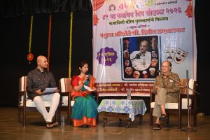 माधुरी ढमाले – कुलकर्णी आणि लीना परगी यांनी सूत्रसंचालन केले. डॉ. विनया केसकर आणि विराज सवाई यांनी प्रकट मुलाखत घेतली. अंजली सहस्रबुद्धे यांनी वर्षभर झालेल्या कार्यक्रमांचा आढावा घेतला. हेमंत झेंडे यांनी आभार मानले.