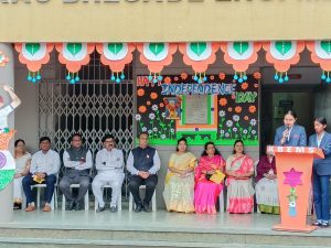 शाळेच्या उपमुख्याध्यापिका सौ. ज्योती सावंत यांनी आपल्या मनोगतातून सर्व विद्यार्थ्यांना स्वातंत्र्य दिनाच्या शुभेच्छा दिल्या व तुम्ही सर्वजण भारताचे उद्याचे सुजाण नागरिक आहात यासाठी सतत प्रयत्नशील राहा असा संदेशही दिला. शाळेच्या मुख्याध्यापिका मिस टी. एन साईलक्ष्मी यांनीही स्वतंत्र भारताचा धगधगता इतिहास सर्वांच्या डोळ्यांसमोर आणला. यानंतर आलेले प्रमुख पाहुणे मा. श्री. मेंथे सर यांनी आपल्या मनोगतातून सर्व विद्यार्थ्यांना स्वातंत्र्य दिनाच्या शुभेच्छा दिल्या व आपणही भविष्यातील भारताचे सुजाण नागरिक होऊन विविध क्षेत्रात आपल्या प्रगतीचा ठसा उमटवावा असे सांगितले. यानंतर मा. श्री. राजेंद्रजी झोरे यांनी संस्थेचे भरभरून कौतुक केले व या शाळेतील सर्व विद्यार्थ्यांचा होणारा सर्वांगीण विकास तसेच शाळेच्या प्रगतीचा आढावा घेतला. यानंतर सर्व पाहुण्यांचे आभार मानून कार्यक्रम संपन्न झाला. सर्व विद्यार्थ्यांना खाऊचे वाटप करून कार्यक्रमाचा समारोप करण्यात आला. कार्यक्रमाचे सूत्रसंचालन इ. दहावीच्या विद्यार्थ्यांनी कु. साईशा कळसकर व कु. अनिता सुतार यांनी केले.