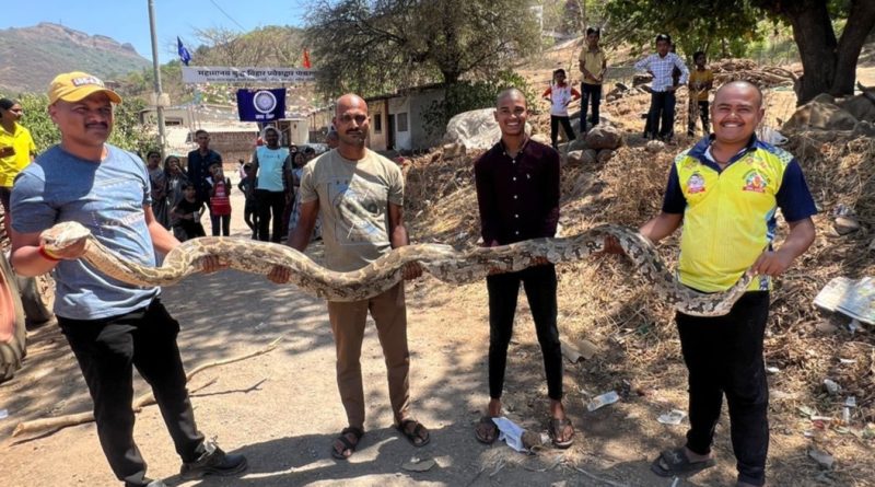 मावळमध्ये १३ फूट लांब अजगराला जीवदान; सुरक्षितपणे निसर्गाच्या सानिध्यात मुक्त